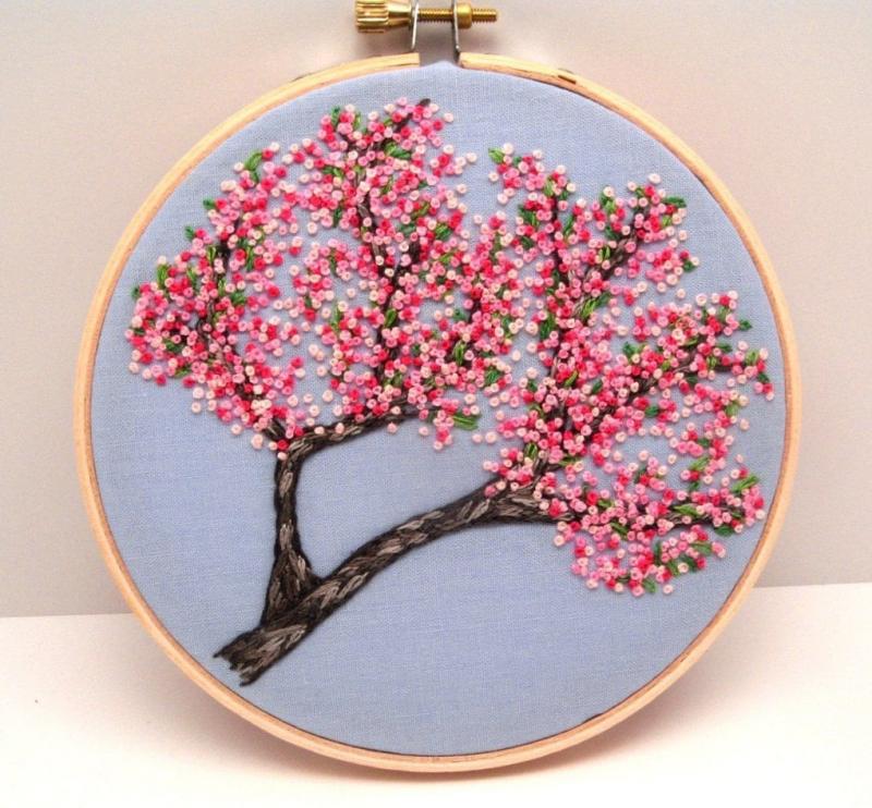 Сирень французскими узелками (вышивка лентами) для начинающих