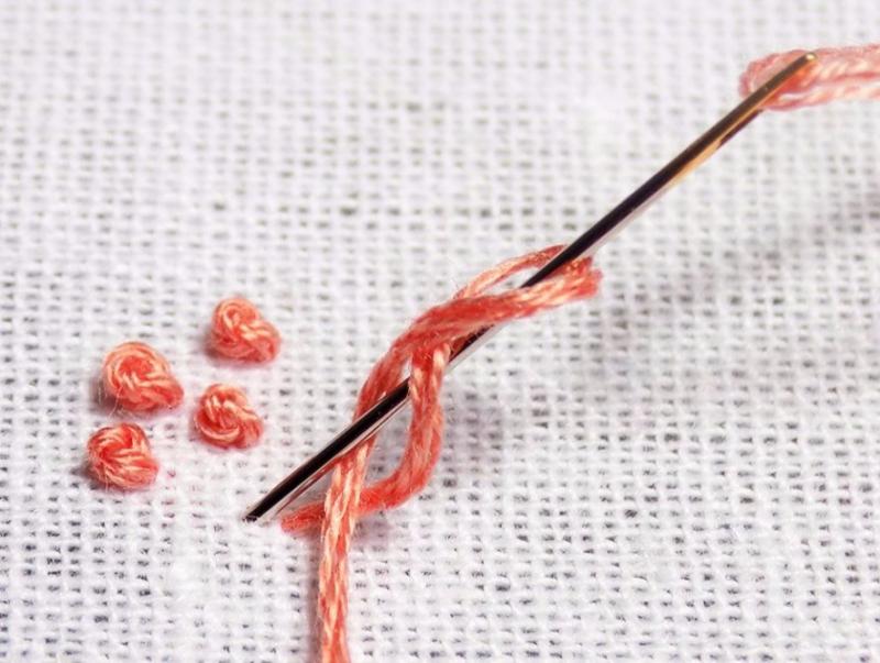 — захватив иглой натянутую нить, сделайте несколько обвитий нити вокруг иглы поближе к ткани