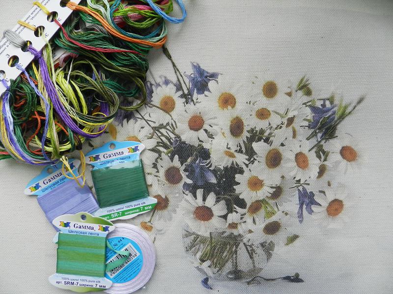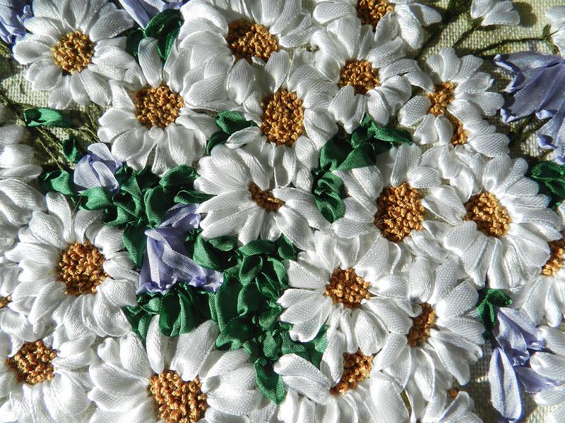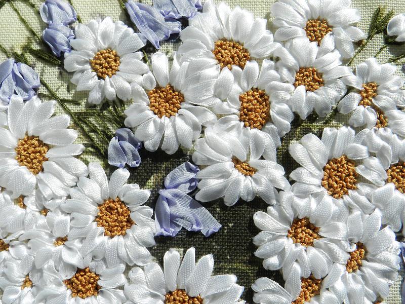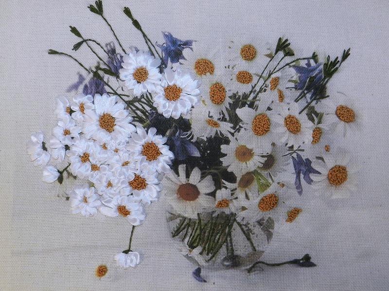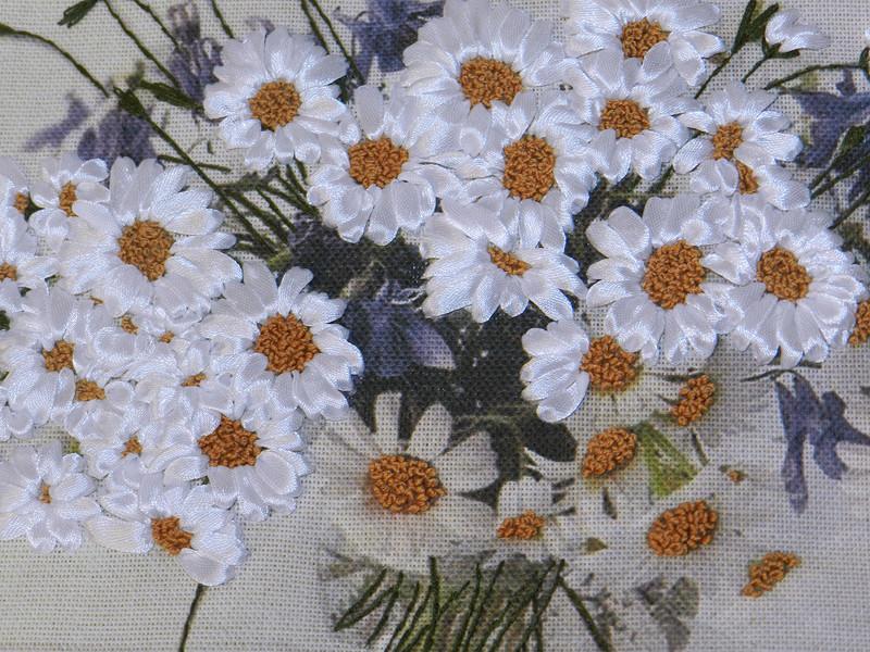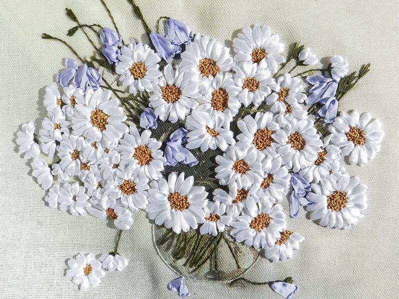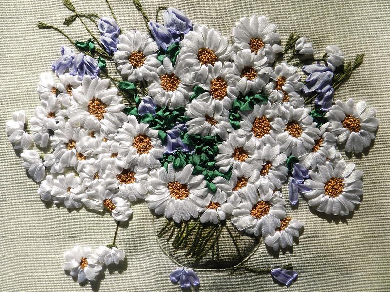 Букет ромашек - вышивка лентами...