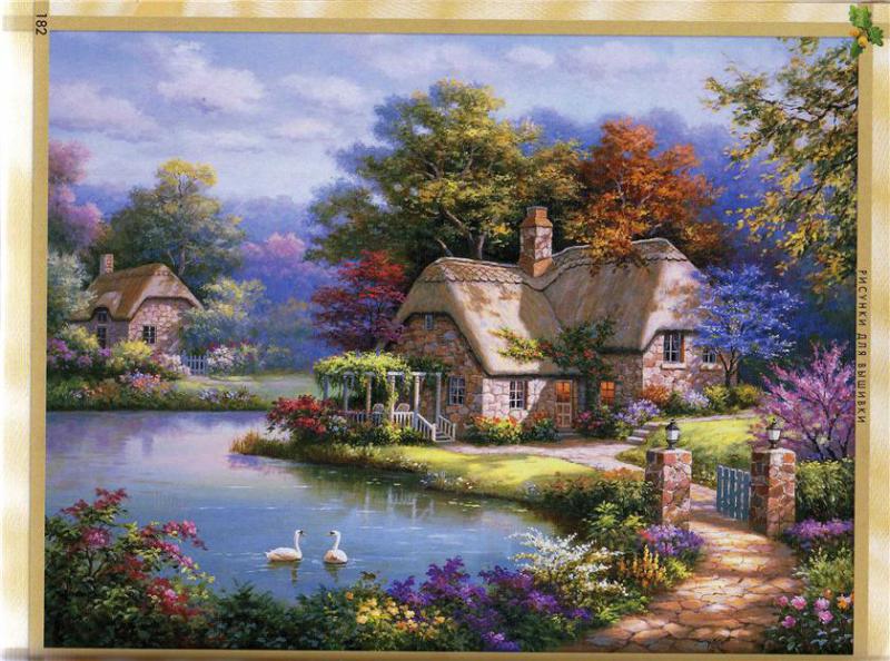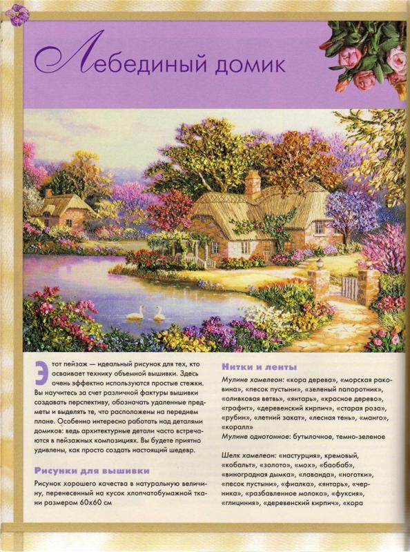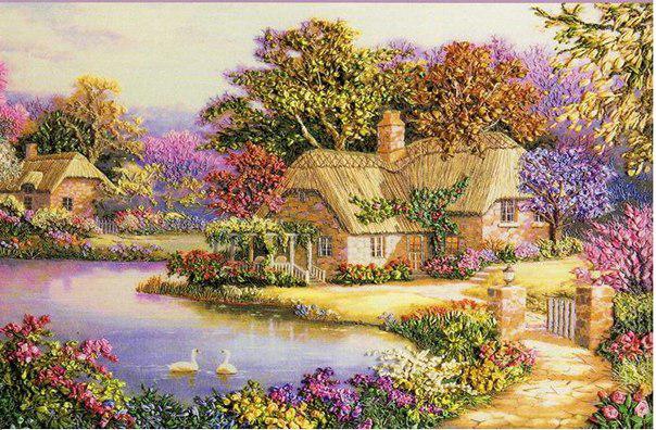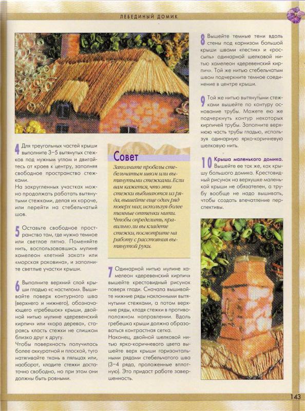 Обьемная вышивка.Лебединый домик