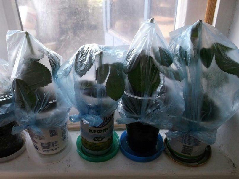 Затем высаживаем в стаканчик или цветочный горшок, обильно поливаем, накрываем полиэтиленовым пакетом