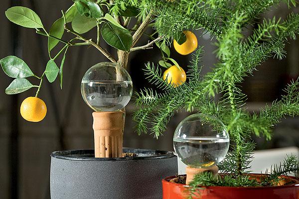 Скажем, система Archimedes , который состоит из стеклянной колбы — резервуара для воды — и керамического конуса, который погружают в землю. Вода сочится сквозь капиллярно-пористые керамические стенки по капле и постоянно увлажняет почву. В балконный ящик или большой горшок их придется поставить несколько, разумеется. Выглядит, кстати, очень симпатично! С точки зрения эстетической это, пожалуй, самый славный вариант. Стоят — около 180 рублей за штучку.