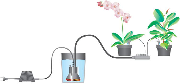 К каждому растению можно подвести один или несколько отводов — выяснять нужное количество придется опытным путем. Если, например, для растений в большом контейнере 60 мл воды в день недостаточно (а именно столько успевает вытечь за минтуту), количество подаваемой влаги придется увеличить, установив дополнительные капиллярные трубочки. Шланг крепится к насосу, насос погружается в указанный выше бак, система начинает работать.