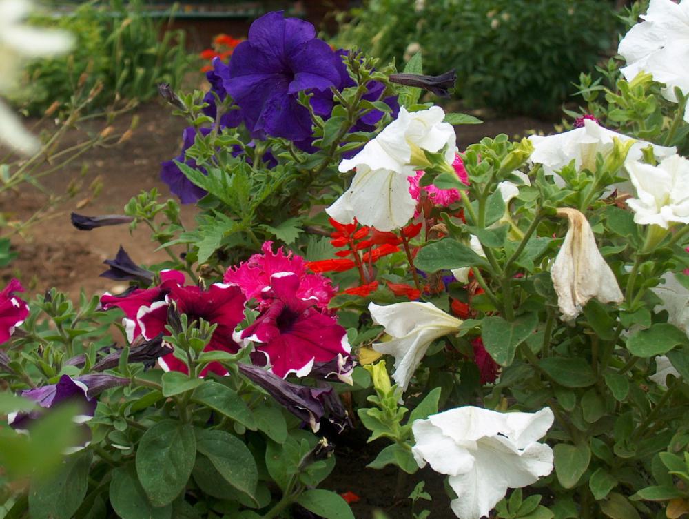 Иногда её цветки разрастаются так, что практически полностью закрывают собою стебли и листву. Выращивание петунии несложно, её семена можно высевать сразу в открытый грунт в мае, а к июлю она уже зацветёт. К почвам неприхотлива, только не любит суглинки и песчаники.