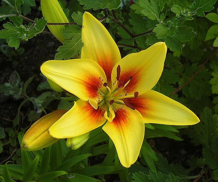 Один невзрачный кустик лилии потребляет из почвы достаточно много химических элементов на образование крупных цветков. Но одинаково ли нужно подкармливать лилии разных видов? Да, все лилии можно удобрять по одинаковой стандартной схеме, которая приведена ниже. Однако некоторые виды (лилия Генри, Давида, королевская, кавказская, кудреватая, трубчатая, а также орлеанские и голландские гибриды) нуждаются в известковании почвы перед посадкой, остальным же это противопоказано.