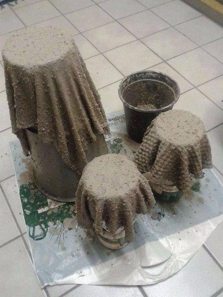 Потом берем ведра и накрываем этой тканью.