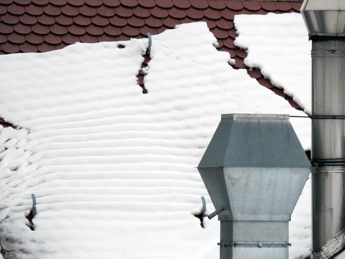 Если восстановление порушенного хозяйства по весне не входит в ваши планы, проблему нужно предотвращать. Понятно, что изменить конструкцию крыши уже построенного здания невозможно. А вот установить на ней снегозадержатели не так уж сложно и дорого. Эти приспособления не позволяют огромным массам снега сходить с крыши одновременно: часть они отсекают, дробят, делая сравнительно безопасными и безвредными, а часть — удерживают (этот снег потихоньку тает под солнечными лучами).