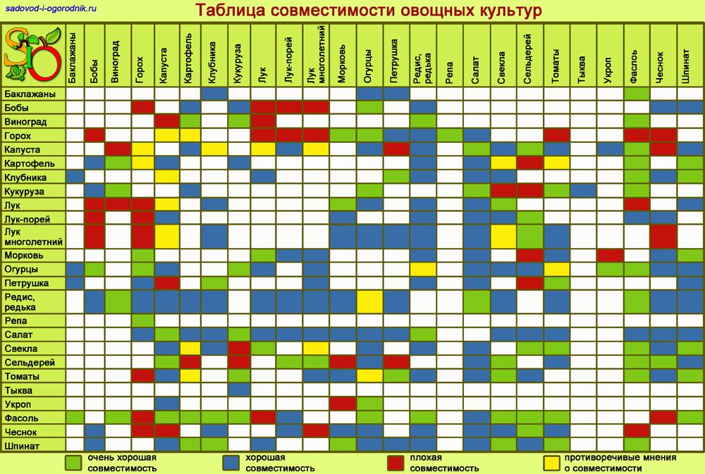 Таблица совместимости овощных культур:
