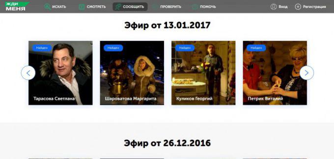 В программе «Жди меня» называют имена и фамилии людей, которых кто-то ищет. Однако перечислить всех, обратившихся в программу за один час, невозможно. Поэтому на сайте «Жди меня» всем желающим предоставляется возможность узнать, не разыскивает ли их кто-нибудь.