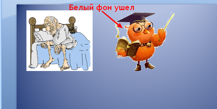 Вот в принципе и все.Без фонов картинки будут выглядеть красивее, тем более анимационные (убрав с них фон) вы можете наложить их на любую свою картинку, и ваша презентация будет самая лучшая.
