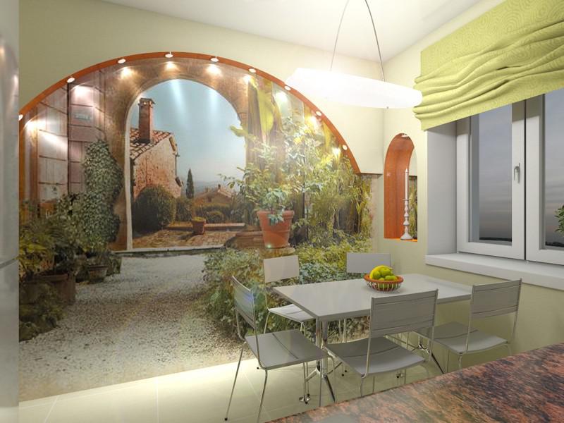 Многие стили в интерьере имеют свою особенность, и её нельзя нарушать. Фотообои на кухню нужно выбирать, как и обычные картины, - не стоит портить солнечный интерьер кухни картинкой снежных гор или картиной небоскрёбов. Также картинка с зеленью не будет хорошо смотреться на кухне стиля хай-тек, а в скандинавском стиле не будет смотреться картина с букетом на всю стену.