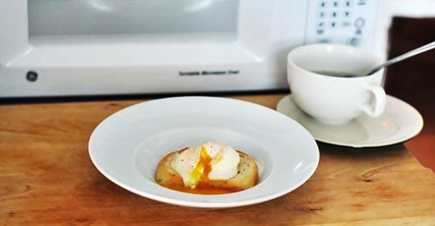 Вы можете приготовить замечательные яйца-пашот в микроволновке, разбив яйца в специальную чашу с кипящей водой и капелькой белого уксуса. Необходимо вставить в желток пару зубочисток, накрыть чашу пищевой пленкой и только после этого поставить все в микроволновку. Блюдо готовится на максимальной мощности в течение 30 секунд. После этого яйцо осторожно поворачивают и повторяют операцию в течение 20 секунд, достигая полной готовности продукта.