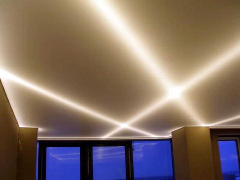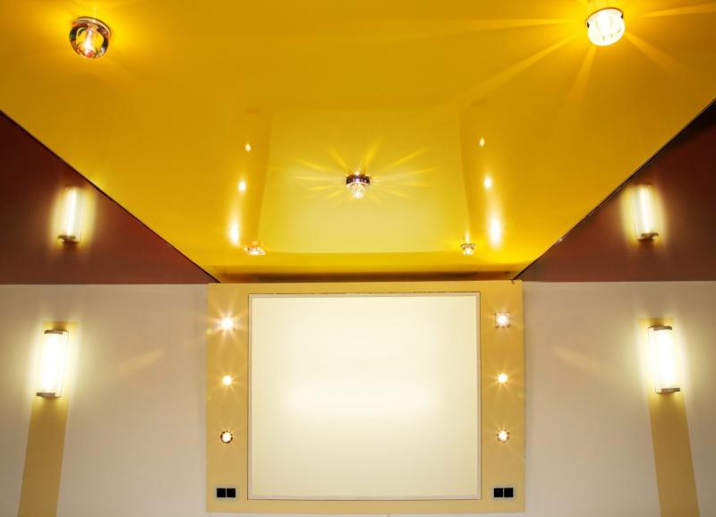 Например, в натяжные потолки можно устанавливать только определённые светильники. Они должны ограничиваться по мощности (не более 40 Вт) и иметь термоизоляцию плафонов. Иначе вокруг светильников через некоторое время на потолке будут образовываться пятна.