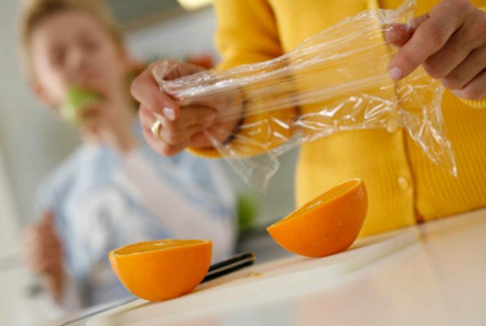 В современных холодильниках, оборудованных системой no frost, кусочки фруктов быстро засыхают. Предотвратить эту неприятность и сохранить фрукты свежими и сочными поможет пищевая пленкой, которой следует замотать срез.