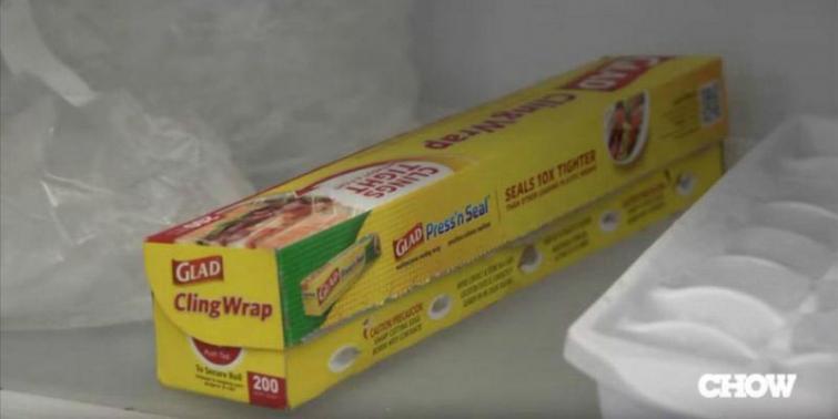 Оберните полки холодильника пищевой пленкой, чтобы не мыть их всякий раз, когда какой-то продукт потечет или оставит жирный след.