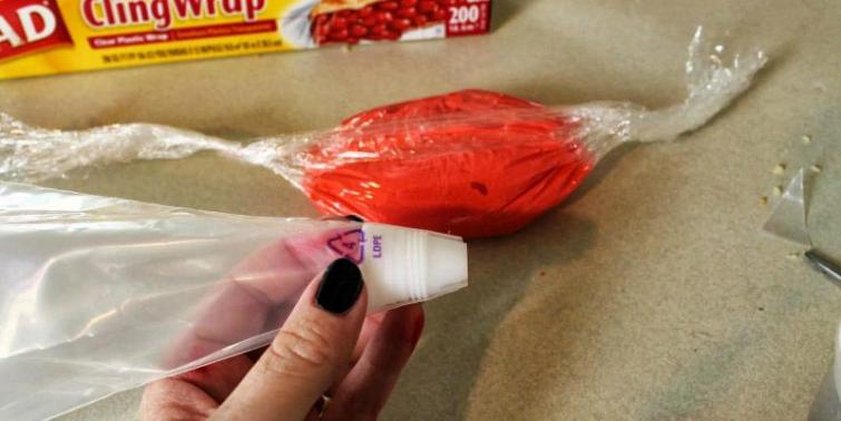 Если мешок один, а кремов несколько (ещё и разных цветов), его приходится много раз мыть. Но всё намного проще, если делать кулёк из пищевой плёнки, накладывать в него крем и вставлять в кондитерский мешок.
