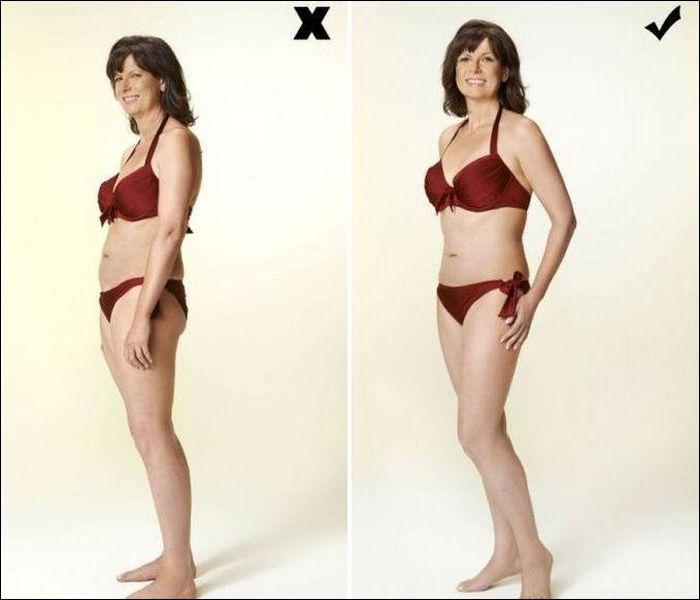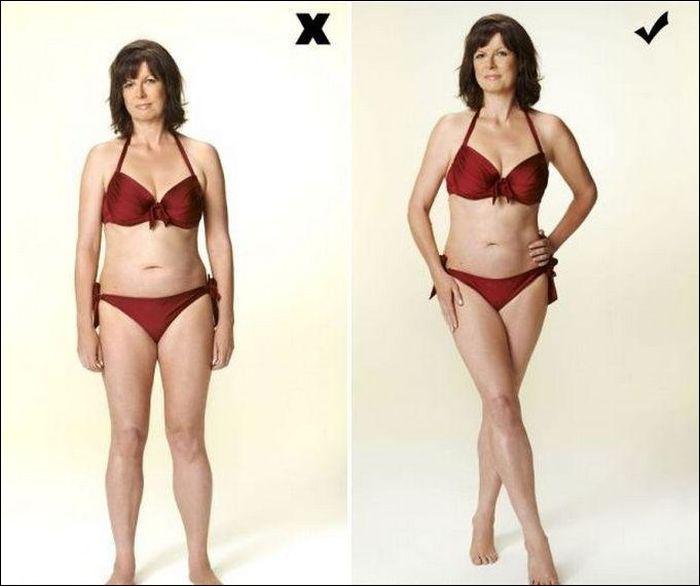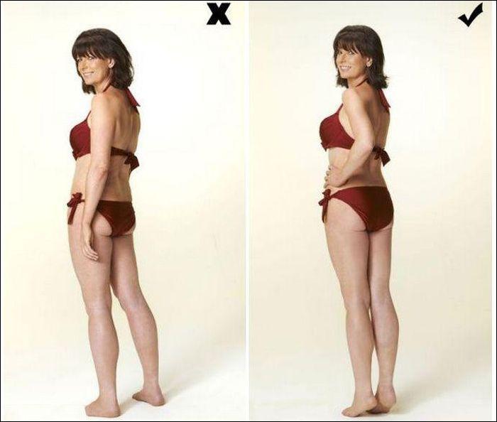 Если переживаете по поводу целлюлита, отверните от камеры «неудачную» часть тела и прикройте ее рукой. Втяните живот. Центр тяжести перенесите на дальнюю от камеры ногу.