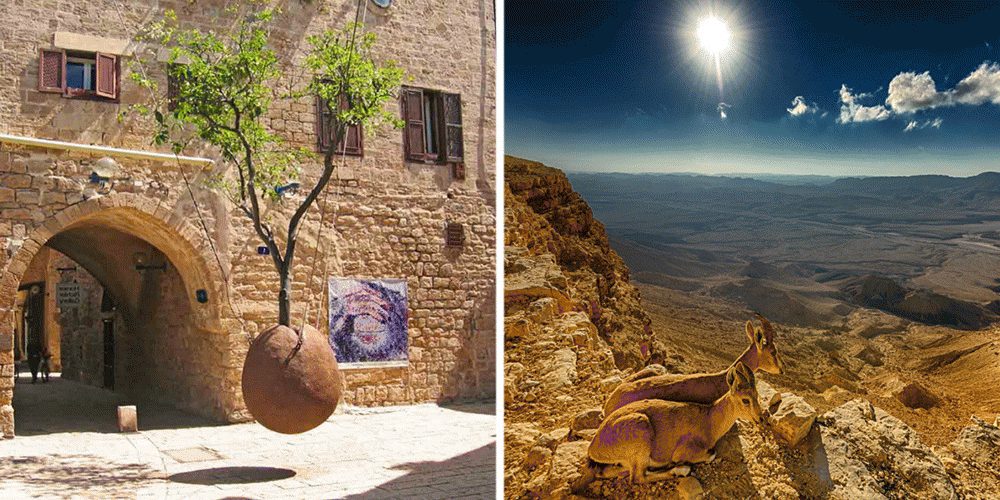 Здесь ощущается дыхание библейской истории, но помимо этого Израиль — уникальное природное место. По площади государство Израиль в 2 раза меньше Московской области, но здесь можно наблюдать до 14 природных зон. От безжизненных пустынь и Мертвого моря до плодороднейших равнин. От гор до прекрасного Средиземного моря. От высохших пустынных потоков до водопадов и густых лесов Галилеи.
