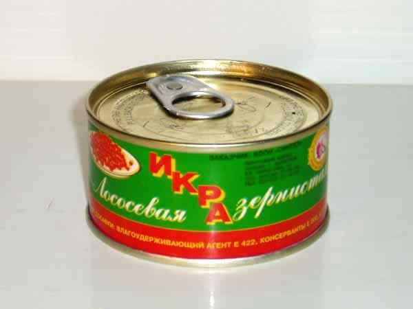 Изучи банку с красной икрой