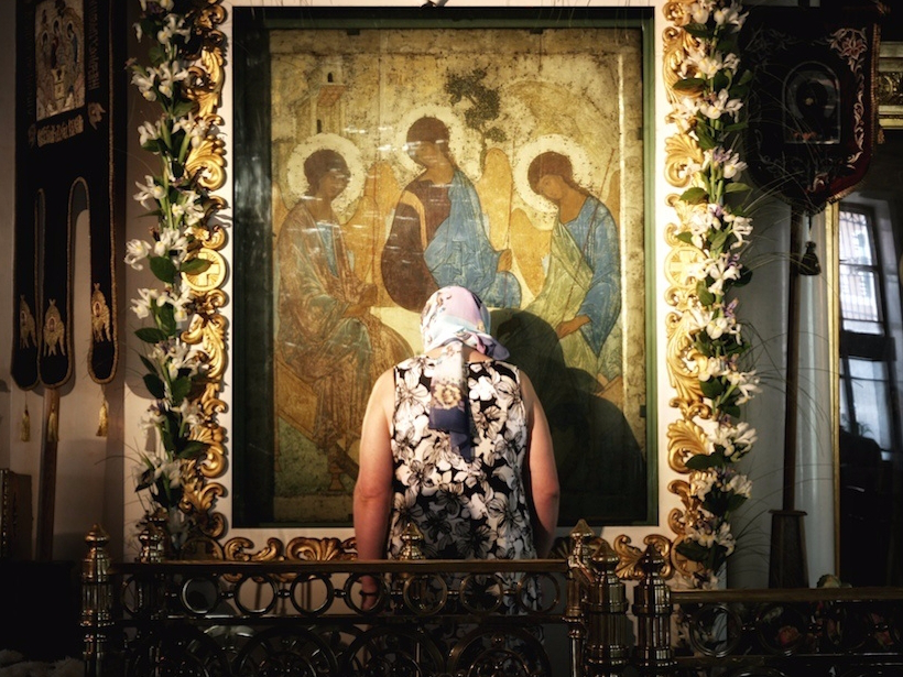 Этот сюжет был весьма популярен у средневековых иконописцев: три ангела, фигуры Авраама и Сарры, накрытый стол, слуга, режущий теленка, - в общем, иллюстрация к библейскому тексту. В начале XV века к теме обратился и Андрей Рублев: его попросили написать образ для Троицкого собора Троице-Сергиевого монастыря (в настоящий момент икона хранится в Третьяковской галерее). Однако из-под кисти вышло нечто совершенно особенное.
