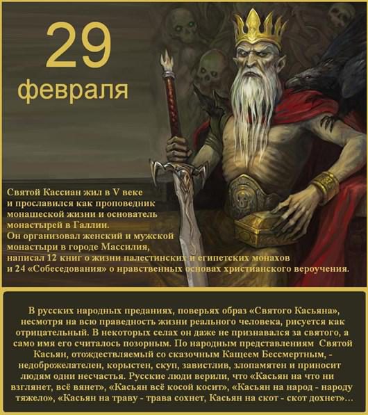 Термин «високосный год» впервые начал употребляться в Римской империи и был введен Юлием Цезарем. На латыни он назывался «биссекстус», на греческом произносился как «виссекстус», на Руси — «високос». Добавили лишний денек месяцу февралю. Позже 29 февраля получило название «Касьянова дня», в честь святого, который славился своим дурным характером.