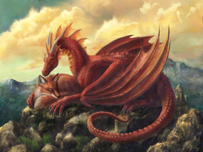 Идет дальше Дракон по лесу. Поймал Лису.