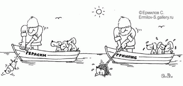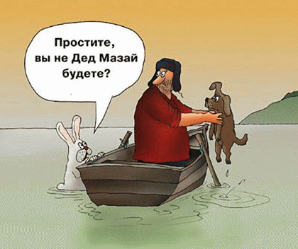 Наденет шкуру собаки, проберется в лодку, развалится на корме и орёт: