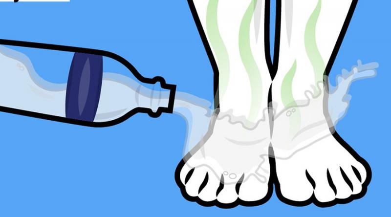 Проще всего справиться с бактериями и грибком может самая обычная водка. Смочите вату в спирте и протрите ноги: антисептик уничтожит и бактерии и неприятный запах.