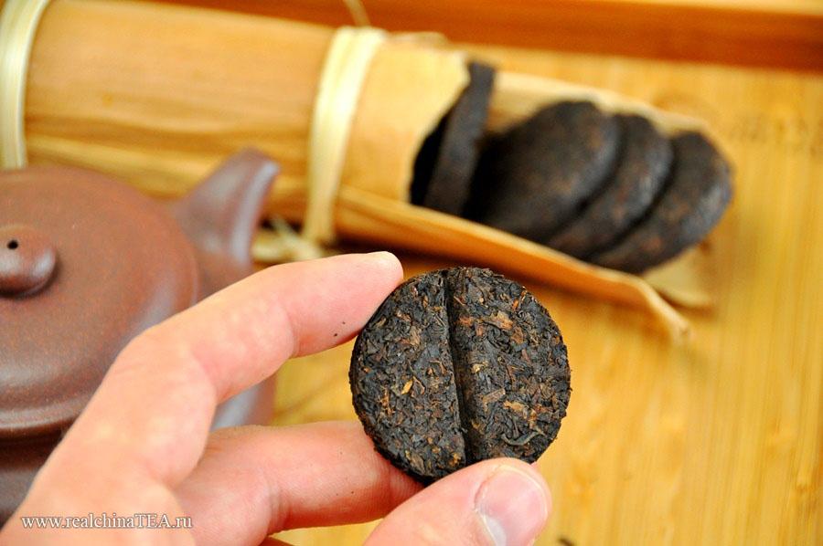После окисления чай прессуют. Вначале его обрабатывают паром, чтобы он стал мягче, затем отправляют в формы и сушат. Готовый чай бывает в виде брусочка, лепешки, птичьего гнезда или тыквы. Размеры фигурок – самые разные. Но для заваривания чайного напитка удобнее всего порционные шарики.