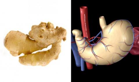 Имбирь похож на желудок и, как известно, помогает справиться с тошнотой. Он содержит гингерол, обладающий противовоспалительными и антиоксидантными свойствами.