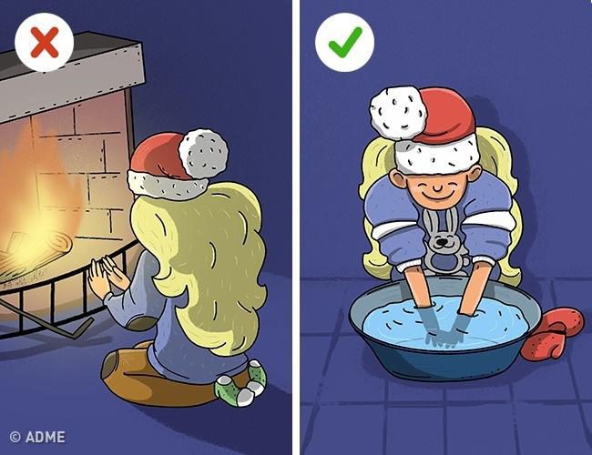 3. Осторожно отогревайте обмороженные участки в теплой воде