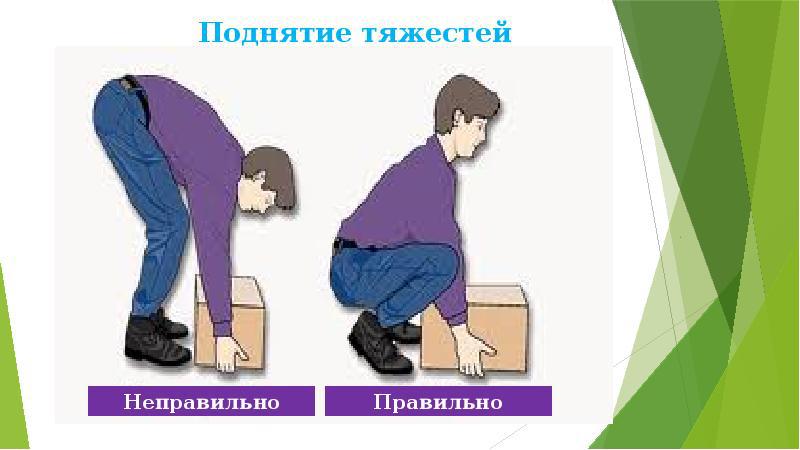 Довольно часто боль в пояснице возникает вследствие неадекватных физических нагрузок. Резкий подъём тяжести или чрезмерно усердная тренировка в спортивном зале (в особенности, если вы не подготовлены к такого рода нагрузкам) может привести к крайне негативным последствиям в виде повреждения мышц или даже межпозвоночных дисков. Обязательно обратитесь к врачу, если боль продолжается более 3 дней.