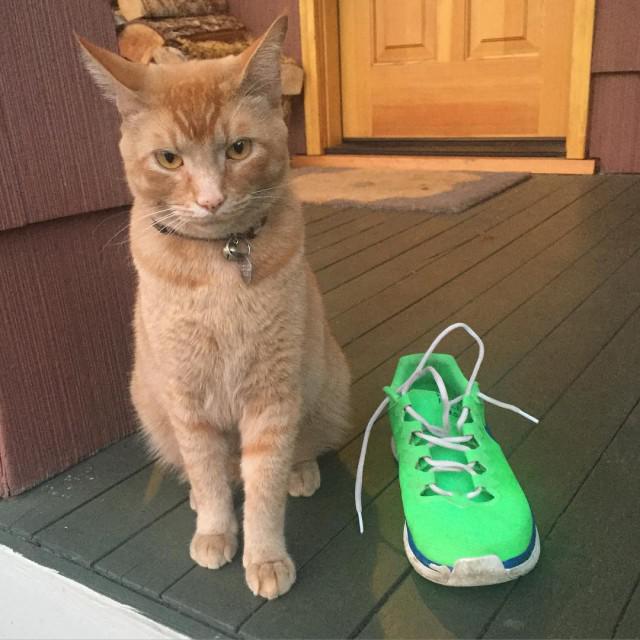 Кот по имени Снорри из Портленда любит воровать соседские тапки. Хозяйка кота завела Инстаграм @snorrithecat, куда выкладывает фотографии добычи, чтобы соседи смогли опознать украденное.