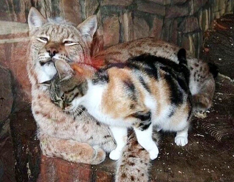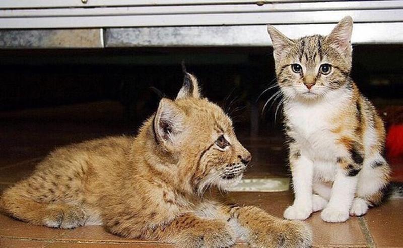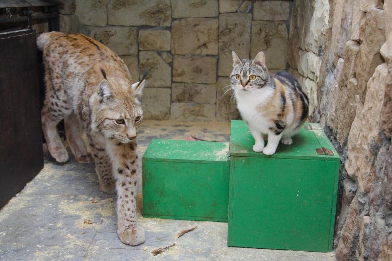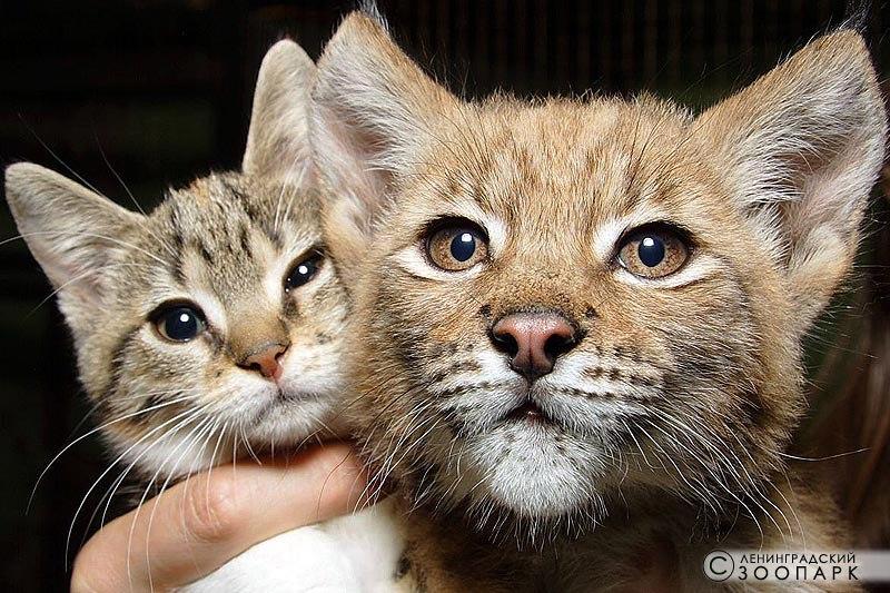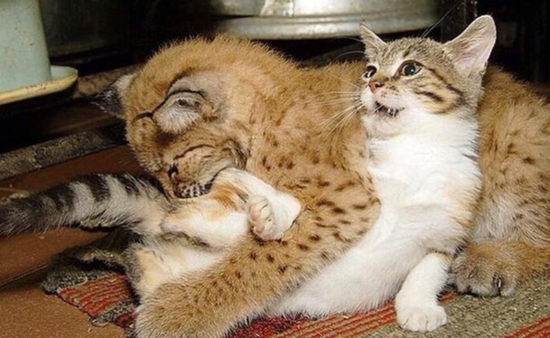 Сегодня рысь в 10 раз больше, чем кошка. Но это ничуть не мешает их дружбе.