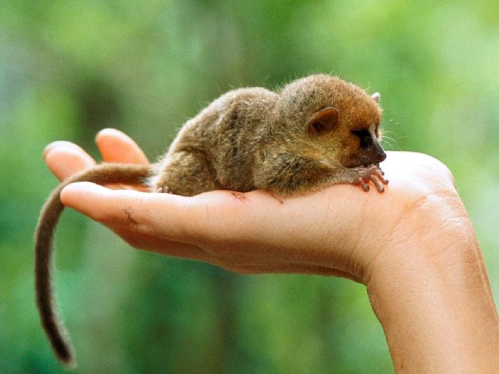 Обитающий на Мадагаскаре, Карликовый мышиный лемур весит всего около 60 г. длина его тела вместе с головой составляет примерно 5 см. Однако хвост в два раза длиннее тела.