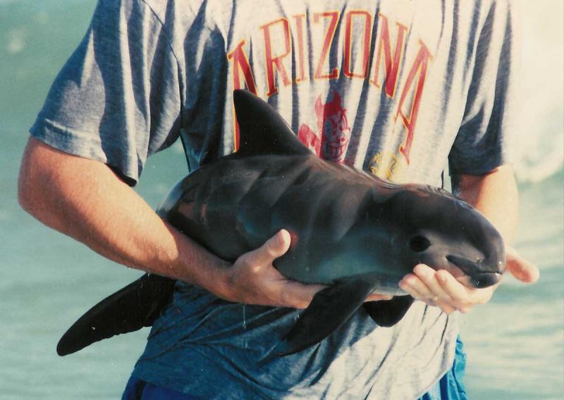 Калифорнийская морская свинья — самое маленькое морское млекопитающее в мире, но, к сожалению, она находится под угрозой вымирания из-за незаконного рыболовства. Эти крошечные китообразные достигают в длину в среднем 1 м.