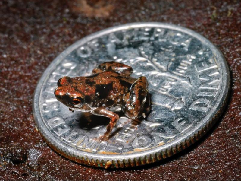 Лягушка размером с домового, Paedophryne Amauensis, является самым маленьким известным позвоночным.