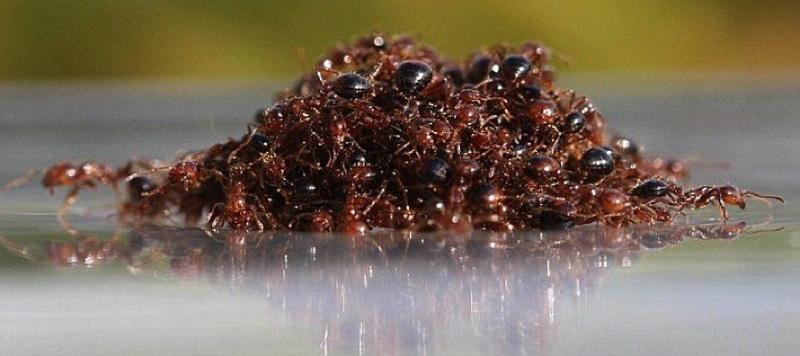Те, что были внизу, конечно же, находились в воде, но до определённого времени. Их добровольно сменяли муравьи с верхнего ряда.