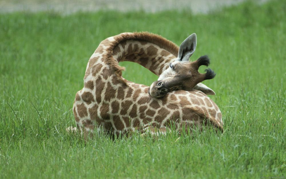 8. В отличие от человека, жирафы умеют отдыхать стоя. Обычно сеанс сна на ногах длится не больше 5 минут. Но когда жирафу необходимо хорошенько выспаться, он ложится на землю, поджимает под себя передние ноги, загибает голову назад и кладет ее на крестец. При этом общая продолжительность сна за сутки у жирафов редко превышает 60 минут.
