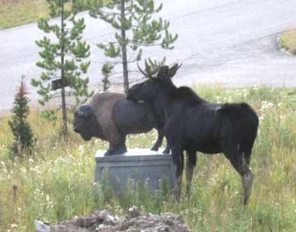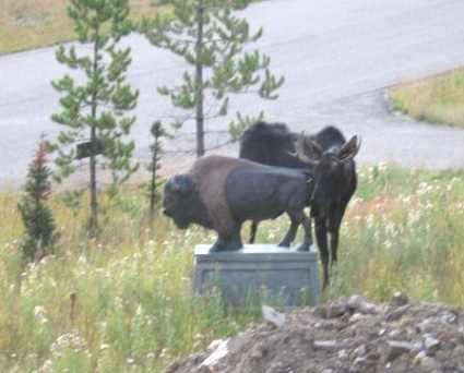 Памятник, о котором идёт речь, представляет собой фигуру бизона в натуральную величину. Он стоял никому особенно не интересный десятки лет, пока его не увидел… лось. И не воспылал к бизону неземной страстью. Самое любопытное, что перед тем, как определиться с чувствами, лось бизона старательно обнюхал…