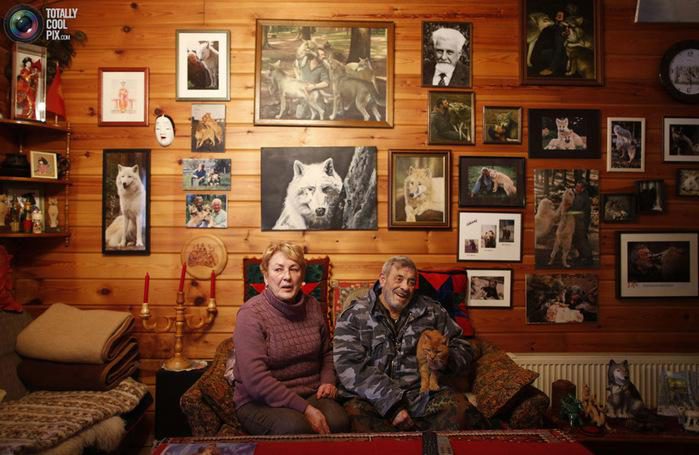 Исследователь Фройнд, его жена Эрика и их любимый кот Макс сидят в гостиной своего дома недалеко от Парка волков Вернера, в волчьем святилище.