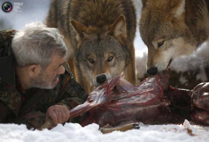 Вернер всегда начинает трапезу первым и не позволяет ни одному голодному волку подойти близко.
