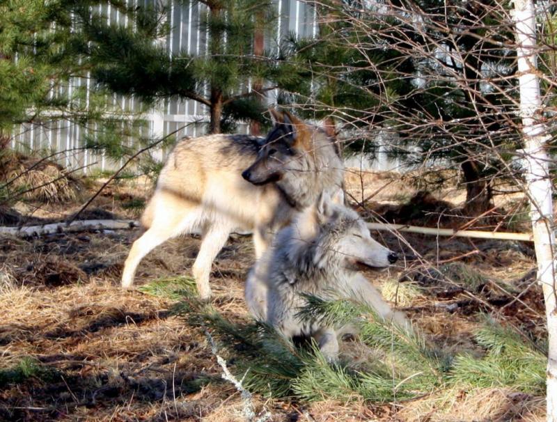 У Хорта и Миры совсем другая история. Они жили вместе, и у них один раз было потомство. Волчат отдали жить на биостанцию. В прошлом году на время гона мы их расселили по разным вольерам. Конечно, Хорт нам потом все высказал. Зато Миру не пришлось стерилизовать.