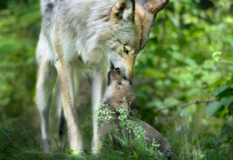 Для успешной реинтродукции лучше, чтобы волчица, у которой родились волчата, была прирученной: у человека должен быть с ней контакт. После рождения происходит естественный грудной выкорм. Если волчат выкармливают искусственно, на соску надо насаживать кусок шкуры, чтобы волчонок мог переминать ее лапками.
