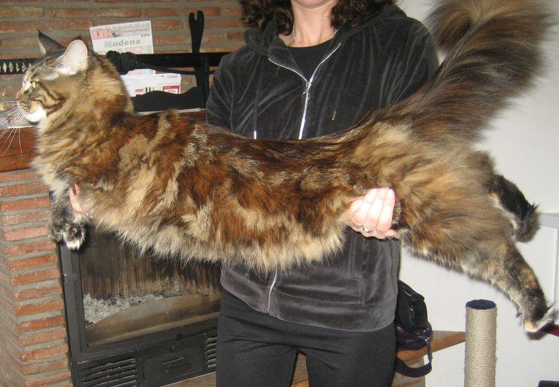 Длина хвоста, как правило, равняется 4/5 общей длины кошки, доставая ей до плеча, то есть у 1,23-метрового рекордсмена был как минимум метровый хвост.