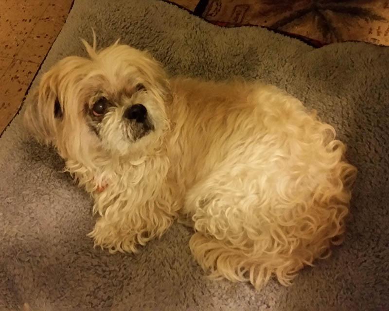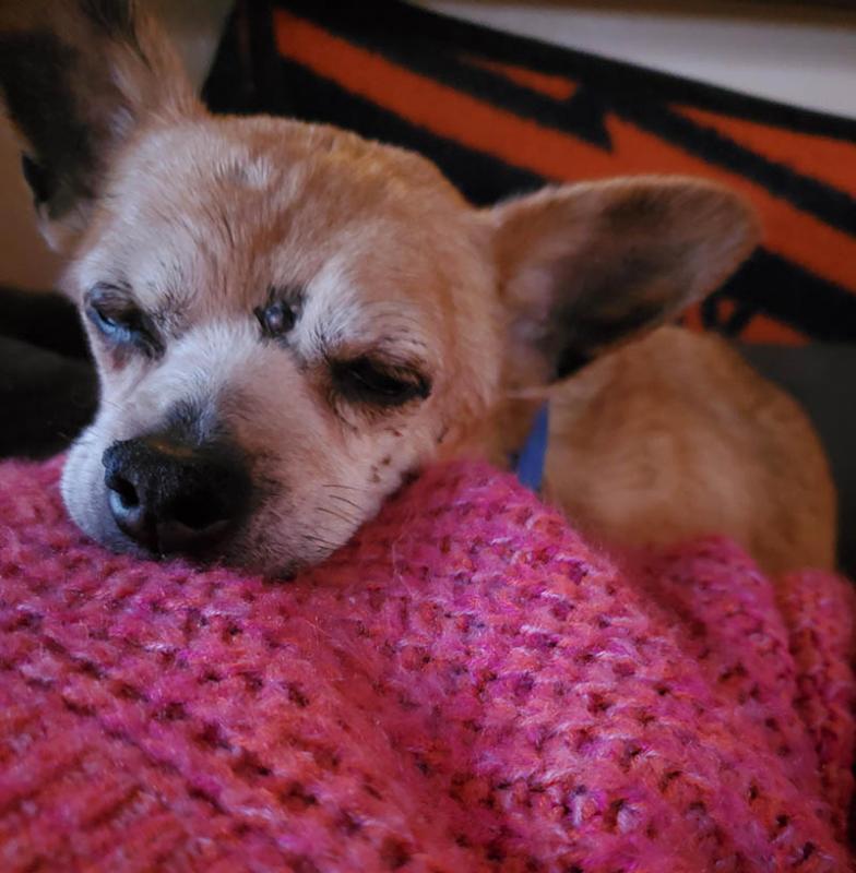 16. В свои 14 лет песик оглох и почти ослеп, но ещё умеет находить теплые местечки