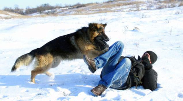 Помните, что главное оружие собаки — её зубы и вес. Царапать вас когтями она не станет. Типовое поведение собаки при нападении — прыжок, сбивание противника с ног и последующие укусы.