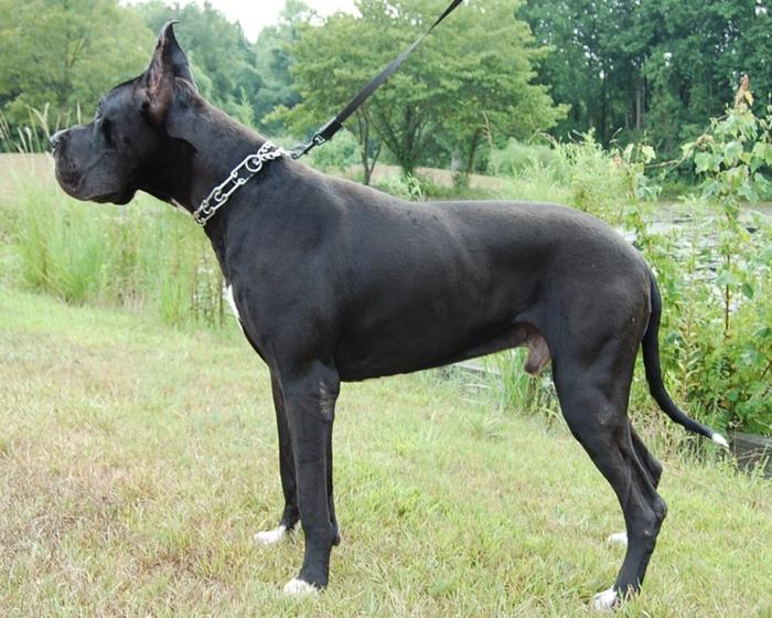 Датский (немецкий) дог – служебная порода, выведена в Германии. Очень крупное животное с неимоверно добрым характером, за что собака получило прозвище «ласковый гигант». Порода абсолютно не агрессивная, скорее ленивая. Прекрасно поддается дрессировке.