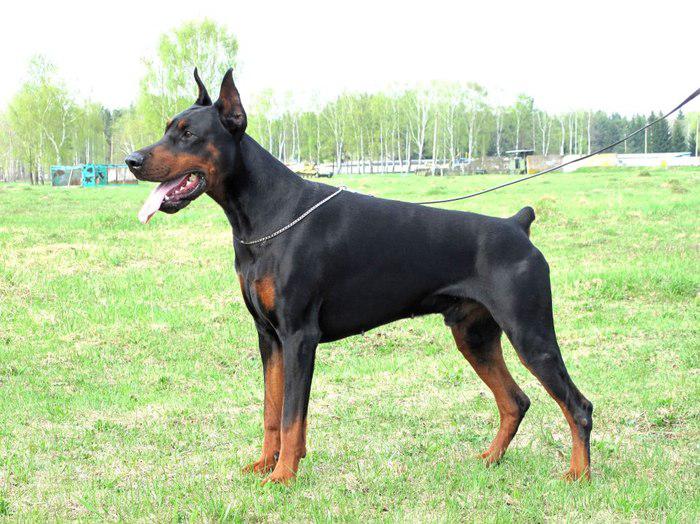 Доберман пинчер – служебная порода, выведена в Германии. Элегантное и сильное животное, обладает неимоверной быстротой реагирования и бесстрашием. За это получило прозвище «собака дьявола». Собаки агрессивны, но успешно поддаются дрессировке.