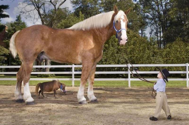 24. Самый тяжёлый считается жеребец из породы бельгийский тяжеловоз, который родился в 1928 году. Его рост составил без двух сантиметров — 2 метра, а вес почти полторы тонны